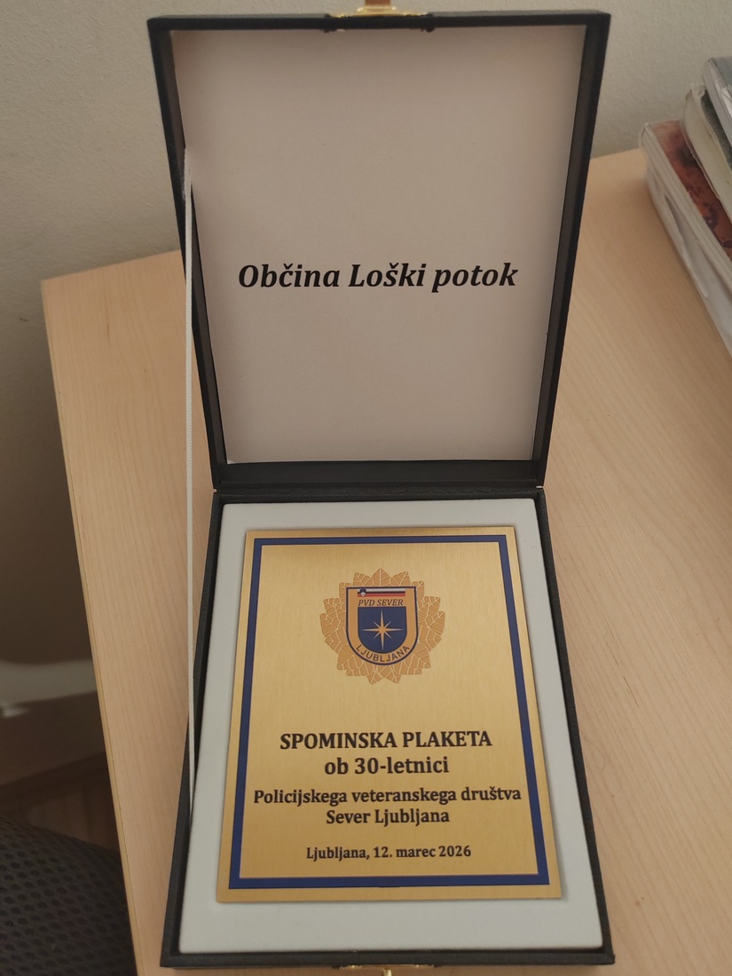 Občina Loški Potok prejela spominsko plaketo Policijskega veteranskega društva Sever Ljubljana